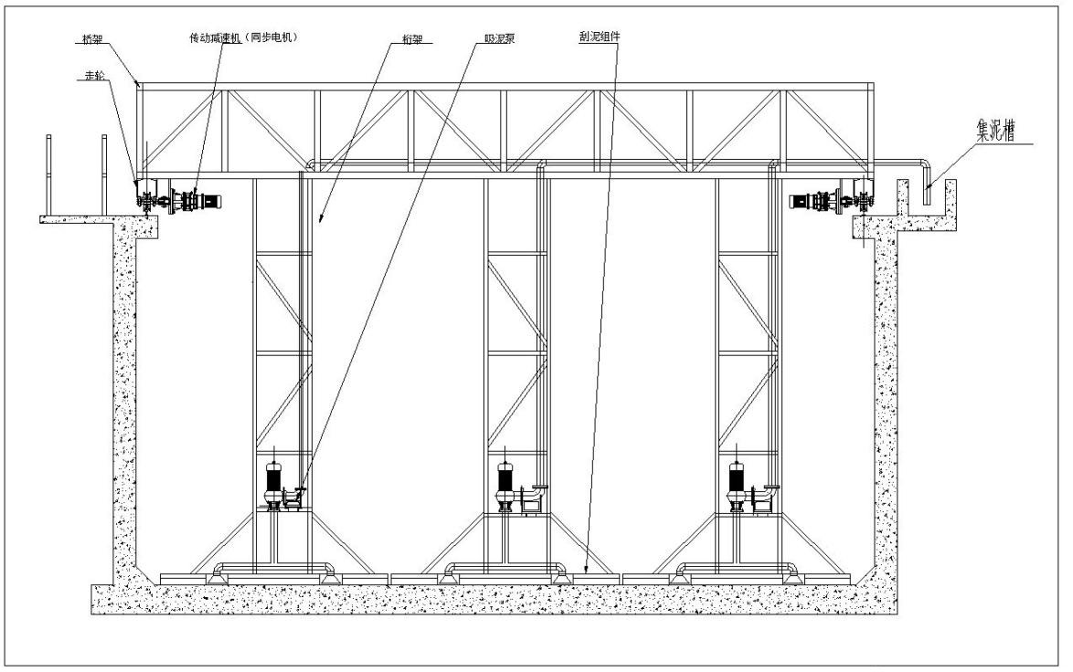 行車式吸泥機(jī)又稱橋式吸泥機(jī),是給水工程中平流式沉淀池和污水處理工程中二次平流式沉淀池等專用排泥設(shè)備。該機(jī)可以克服活性污泥比重小含水率高二難以刮集的困難,目前我公司生產(chǎn)的桁架式吸泥機(jī)分為斜板(管)虹吸式吸泥機(jī)、不帶斜板(管)吸泥機(jī)和泵吸式吸泥機(jī)等三種。